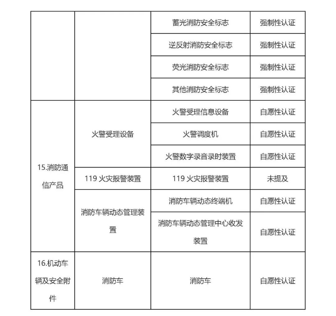 綜合取消強制性認證并開展自愿性認證的消防產品,得出最新仍需要強制性認證及自愿性認證目錄